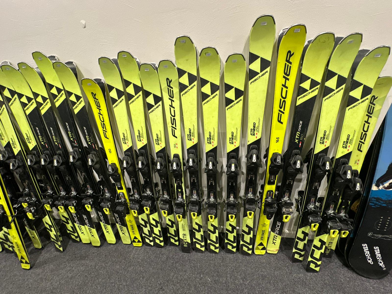 Dit rek is gevuld met de volgende skis: